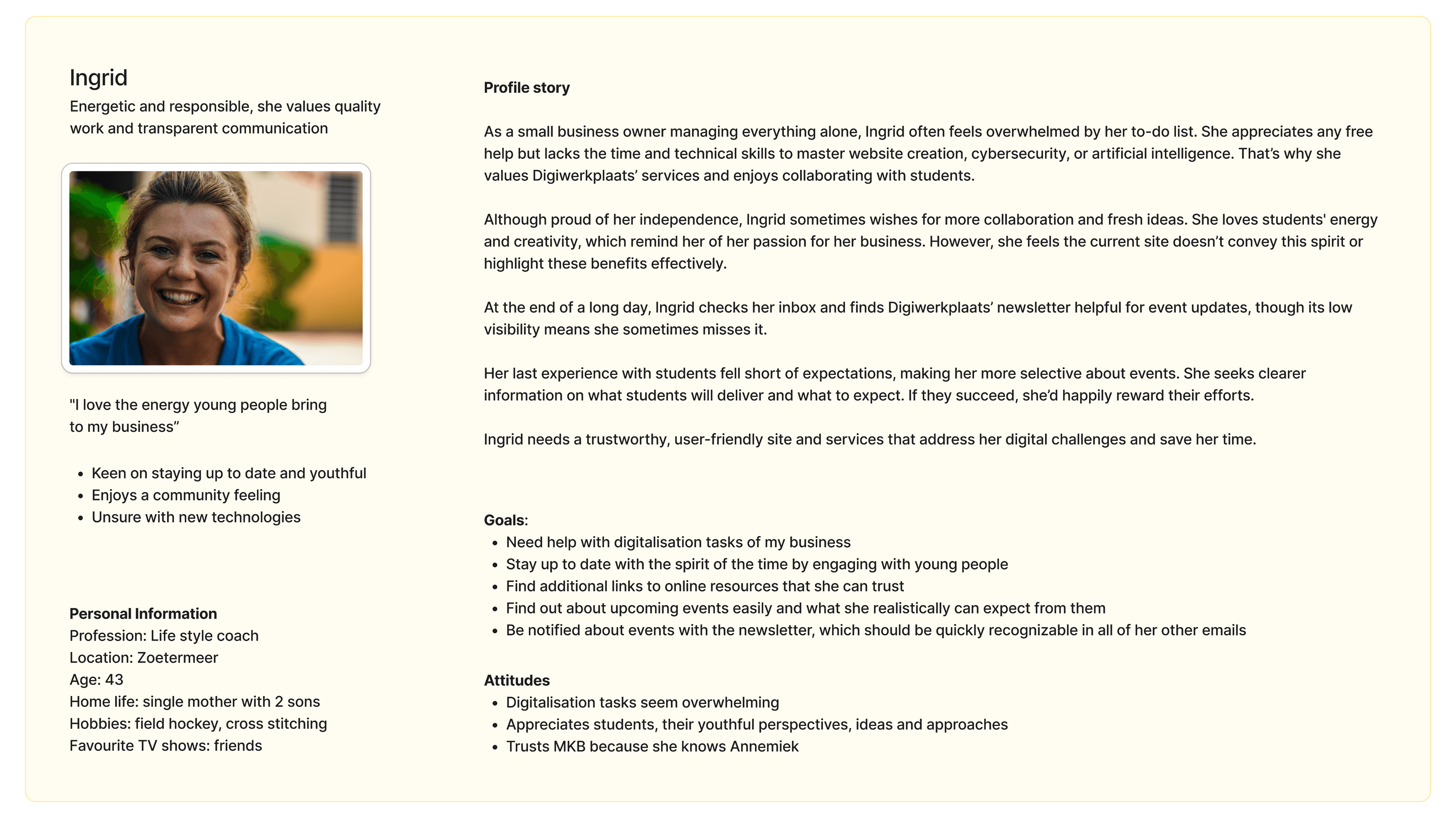 These insights will serve as guidelines for the design phase and help MKB build a website that truly reflects their brand and meets the needs of entrepreneurs.