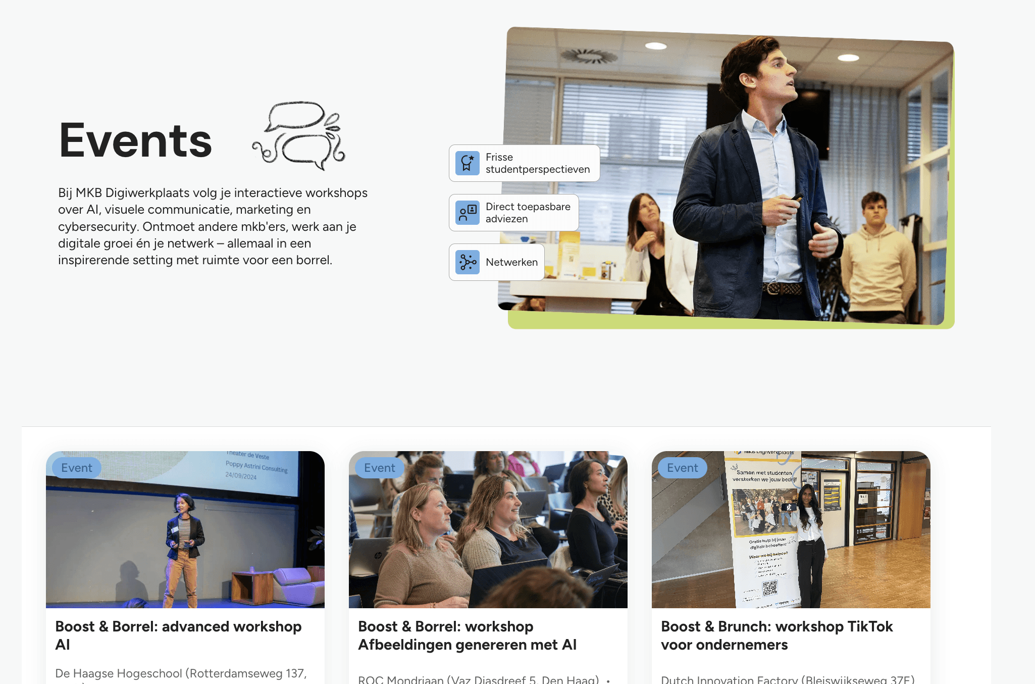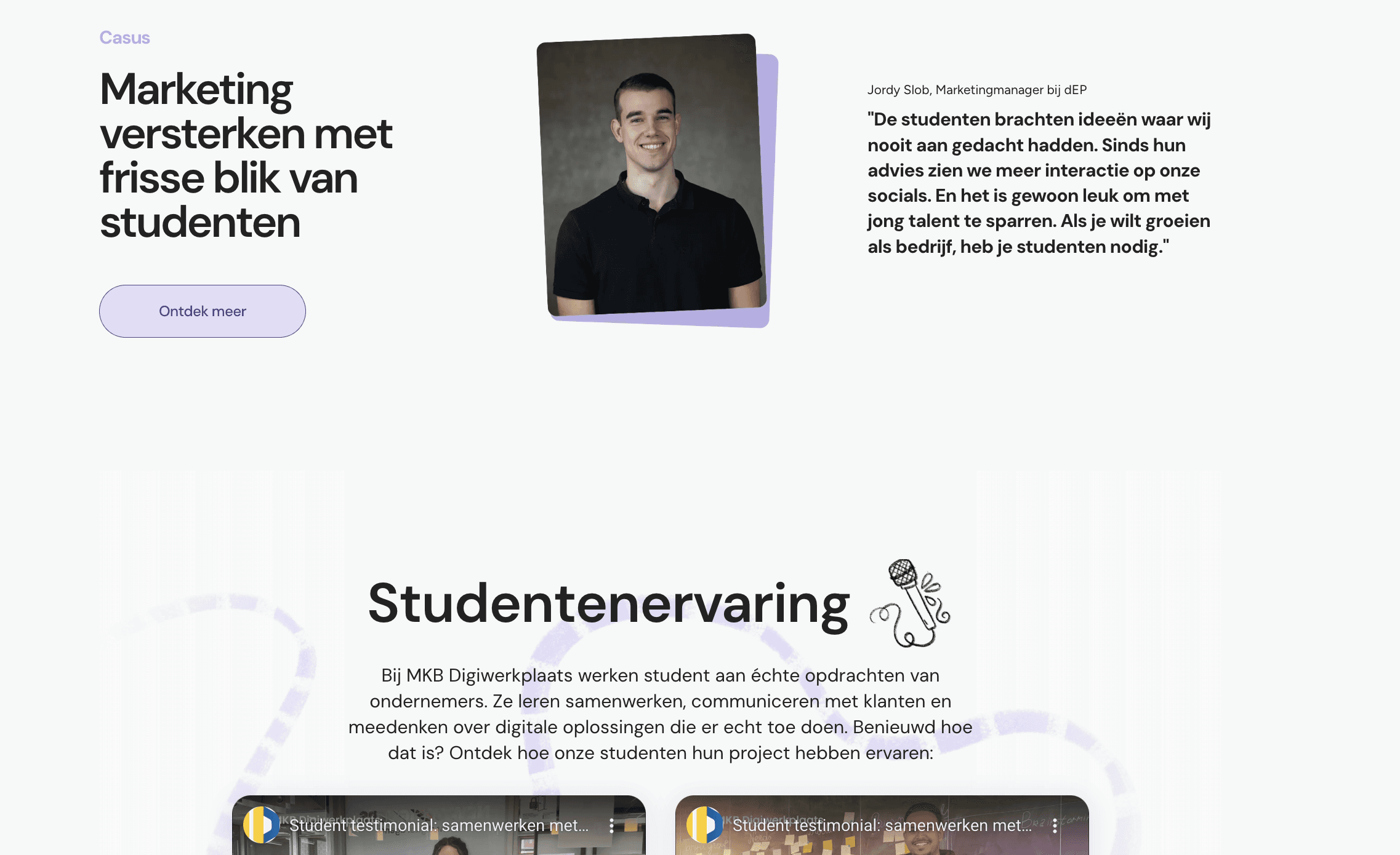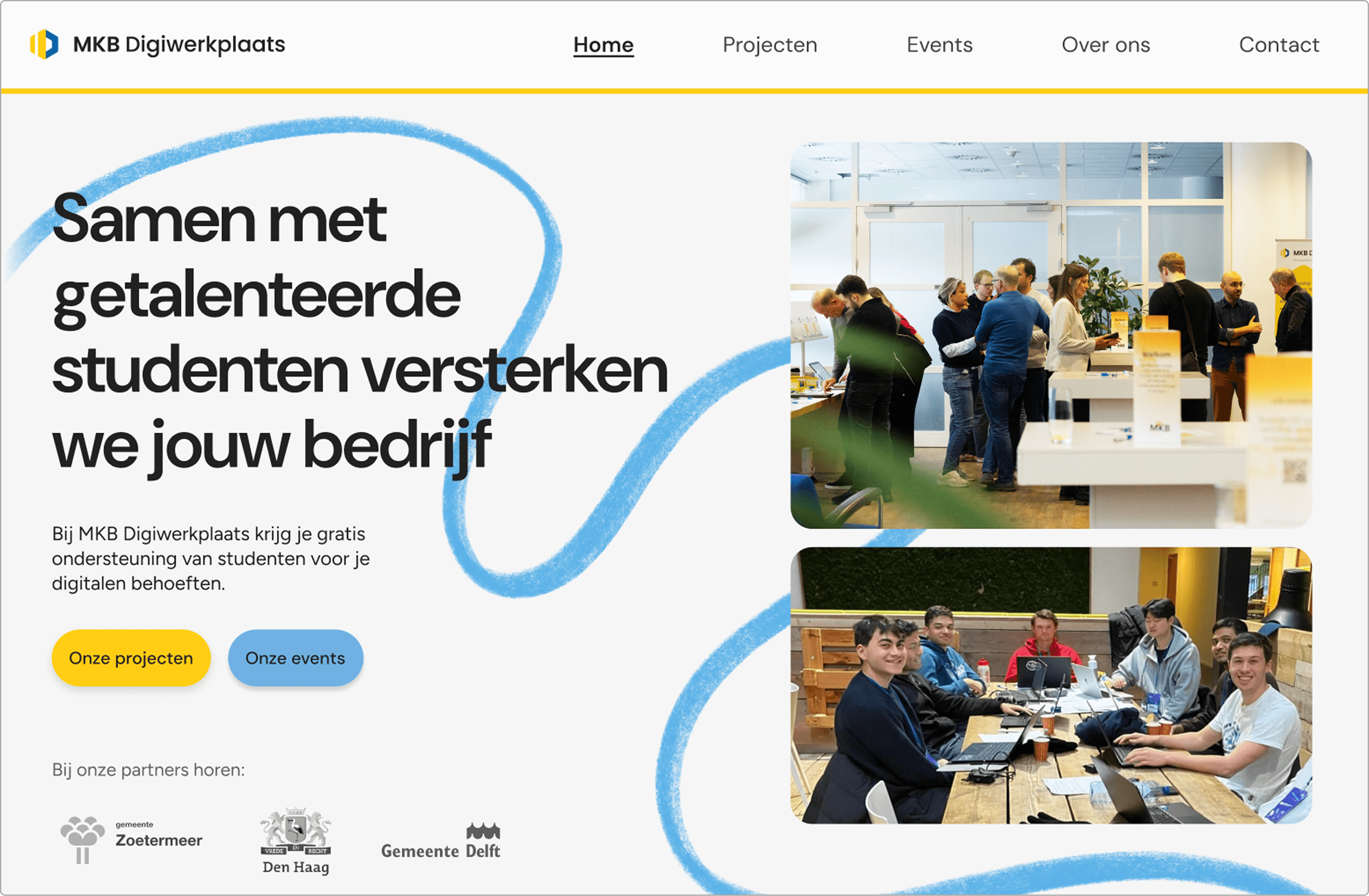 “Together with talented students, we strengthen your business. At MKB Digiwerkplaats, you receive free support from students for your digital needs.”